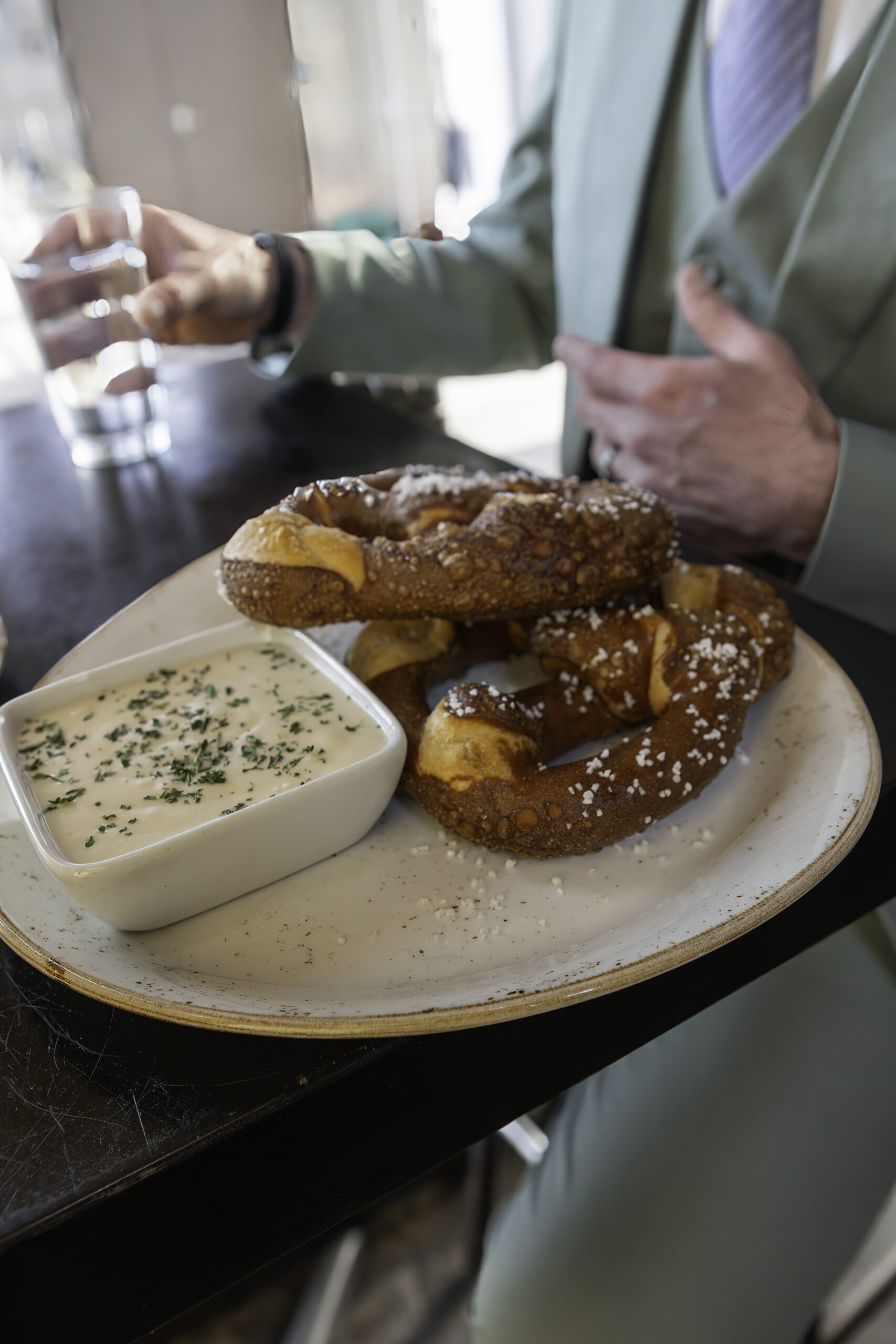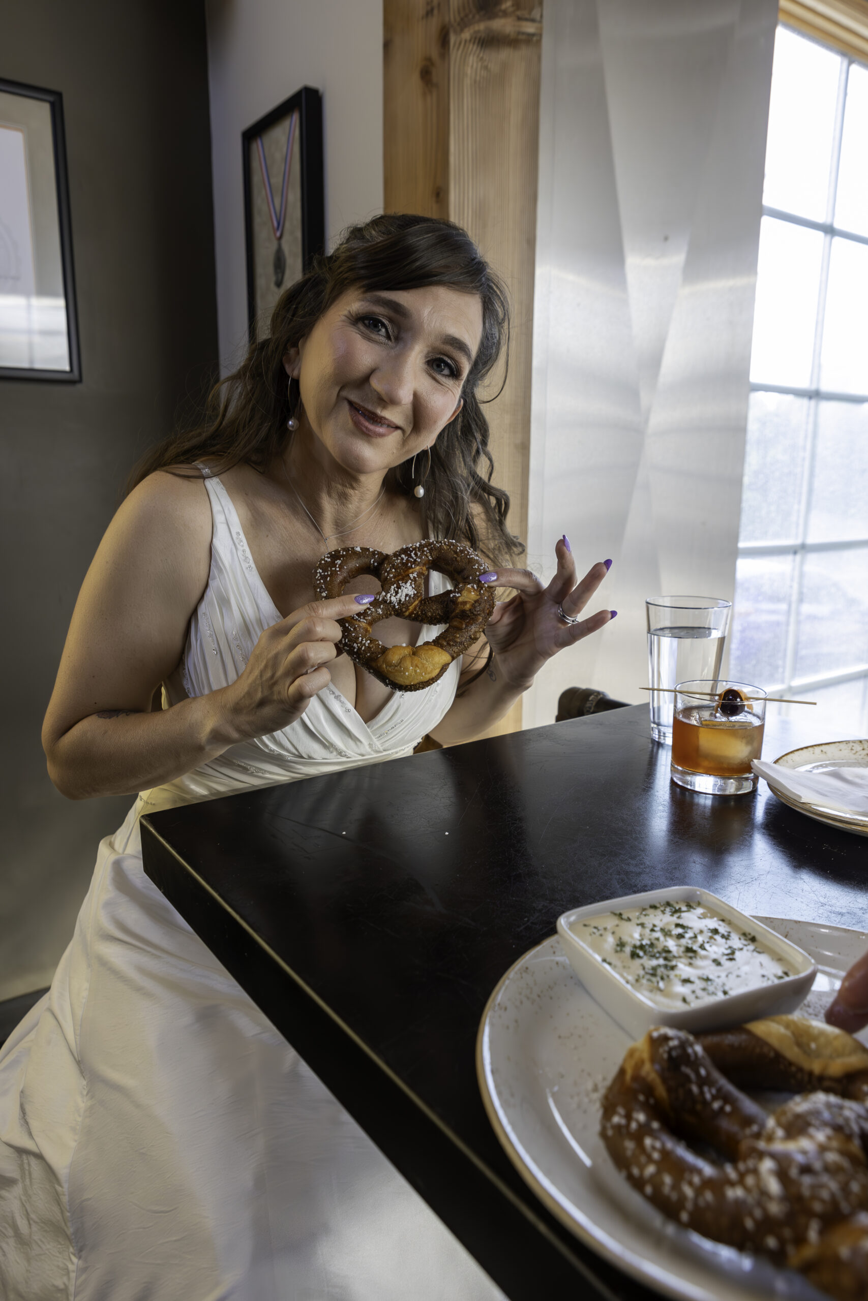 They shared salt-encrusted pretzels dipped in gooey cheese sauce, devoured fish tacos, and sipped Old Fashioneds at the bar. It was relaxed, cozy, and full of laughter — the perfect way to start a vow renewal day.
