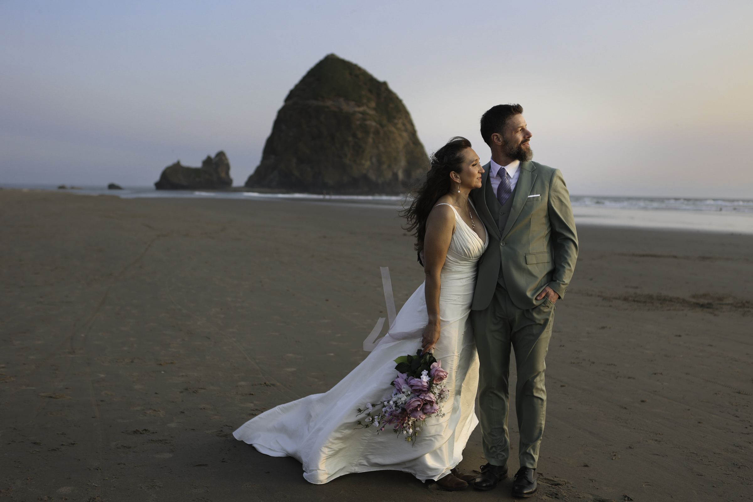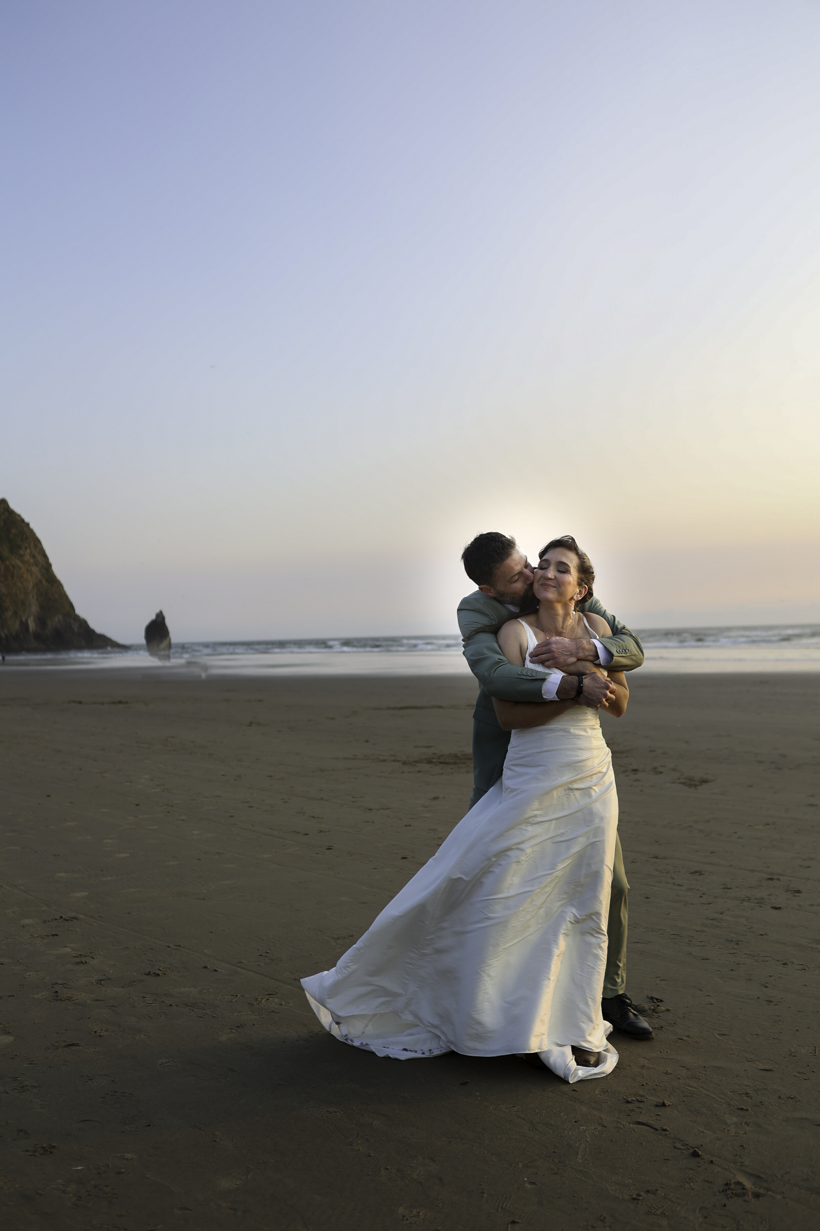 In June, Jeff and Amber renewed their vows at Cannon Beach, with Haystack Rock rising behind them and the Pacific Ocean stretching out in every direction.