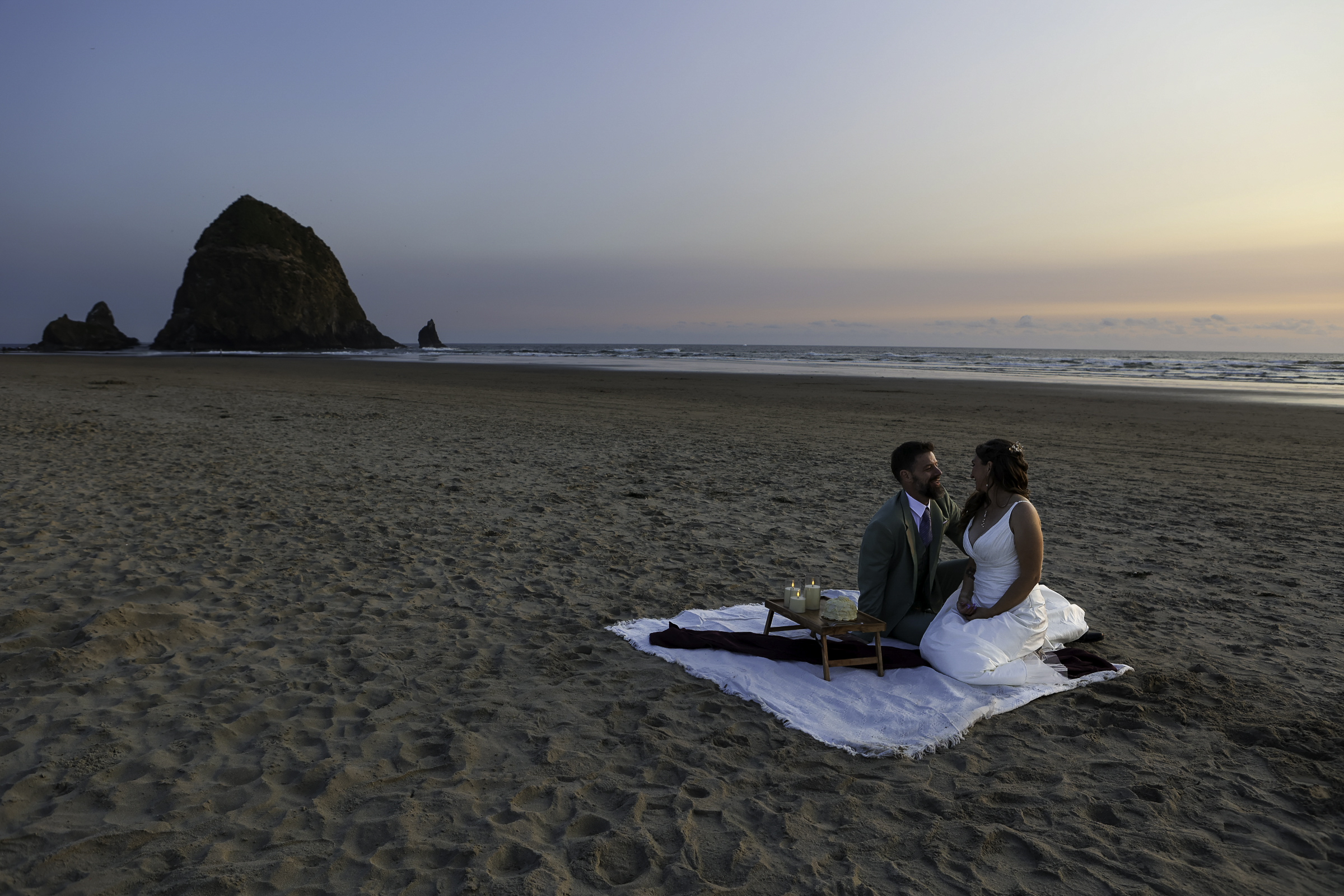 As the sun dipped lower, Jeff and Amber set up a picnic right on the beach next to Haystack Rock.