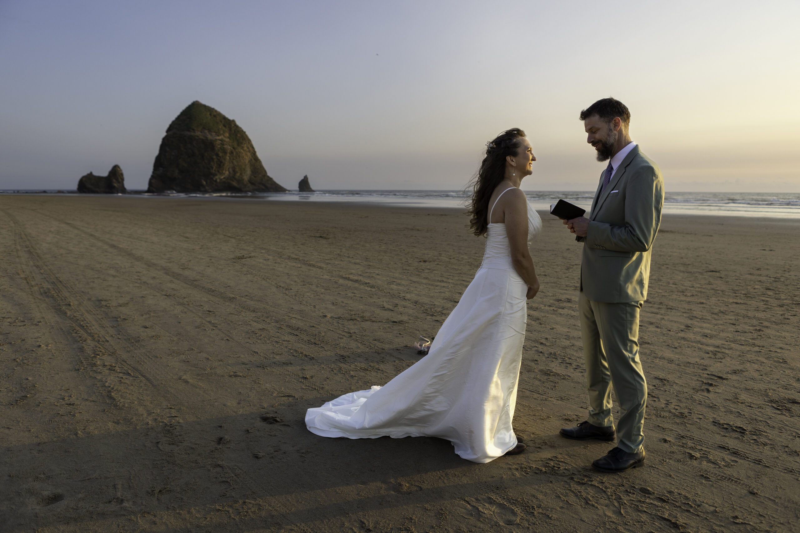 Standing in front of Haystack Rock, Jeff and Amber exchanged vows with the ocean behind them and the sand beneath their feet.