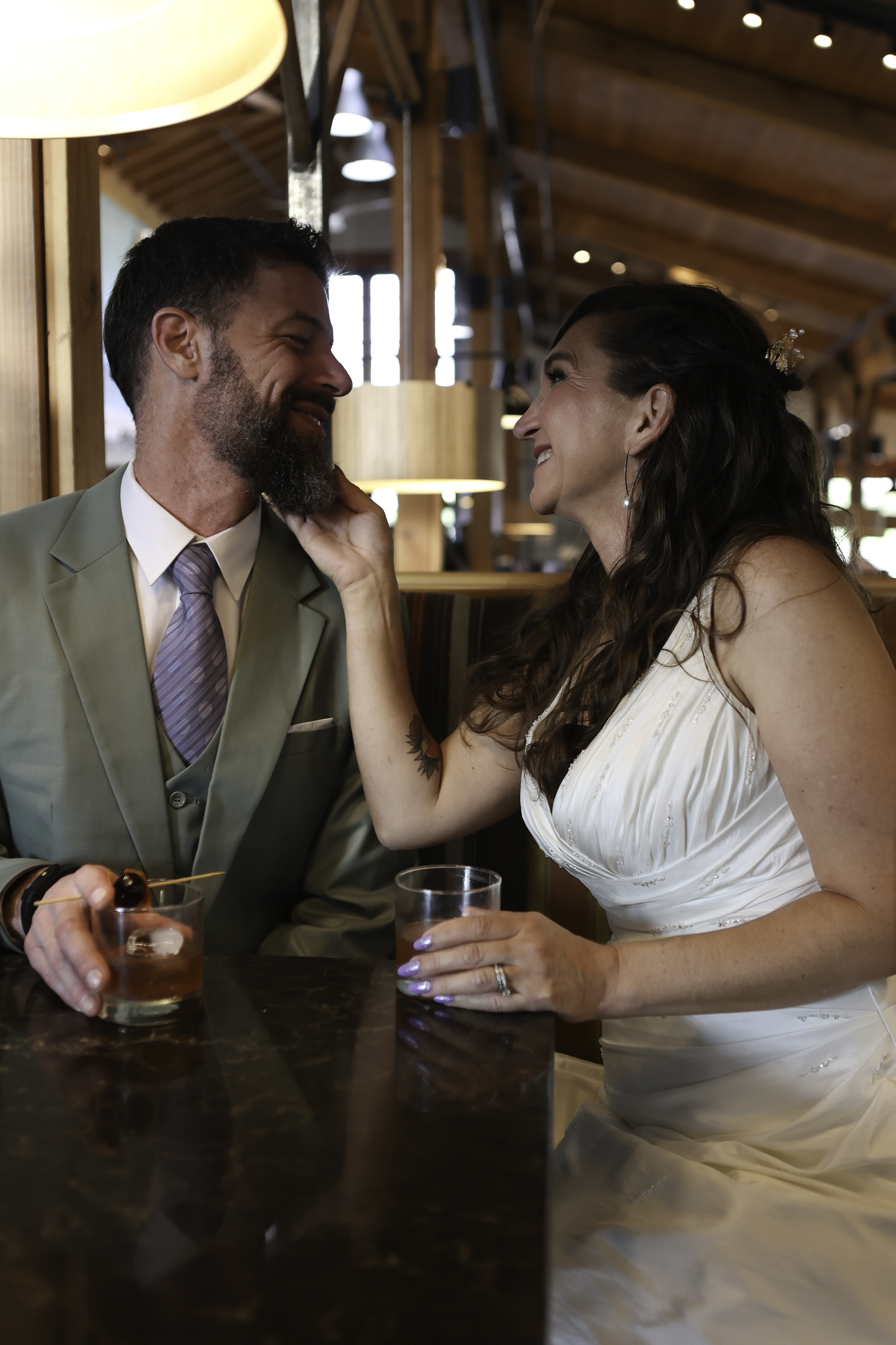 Jeff and Amber’s Old Fashioneds, shared pretzels, and quiet moments at the bar created some of the most natural, unposed photos of the day.