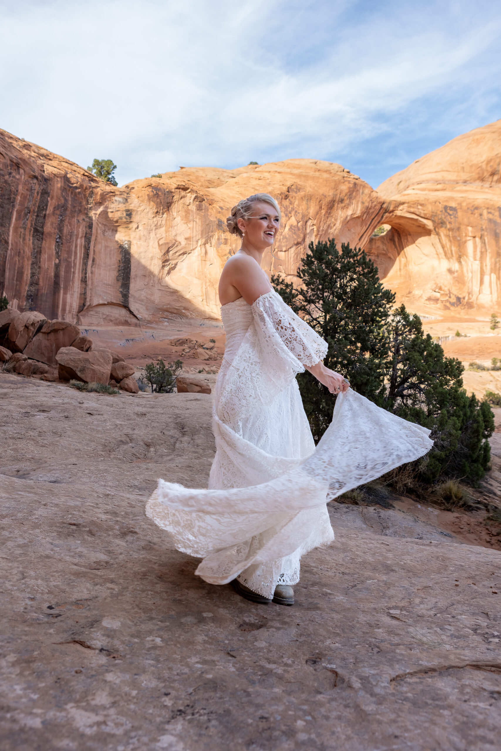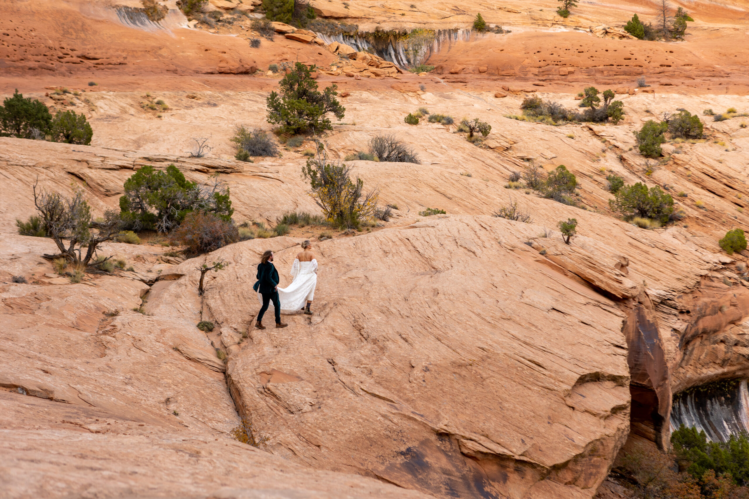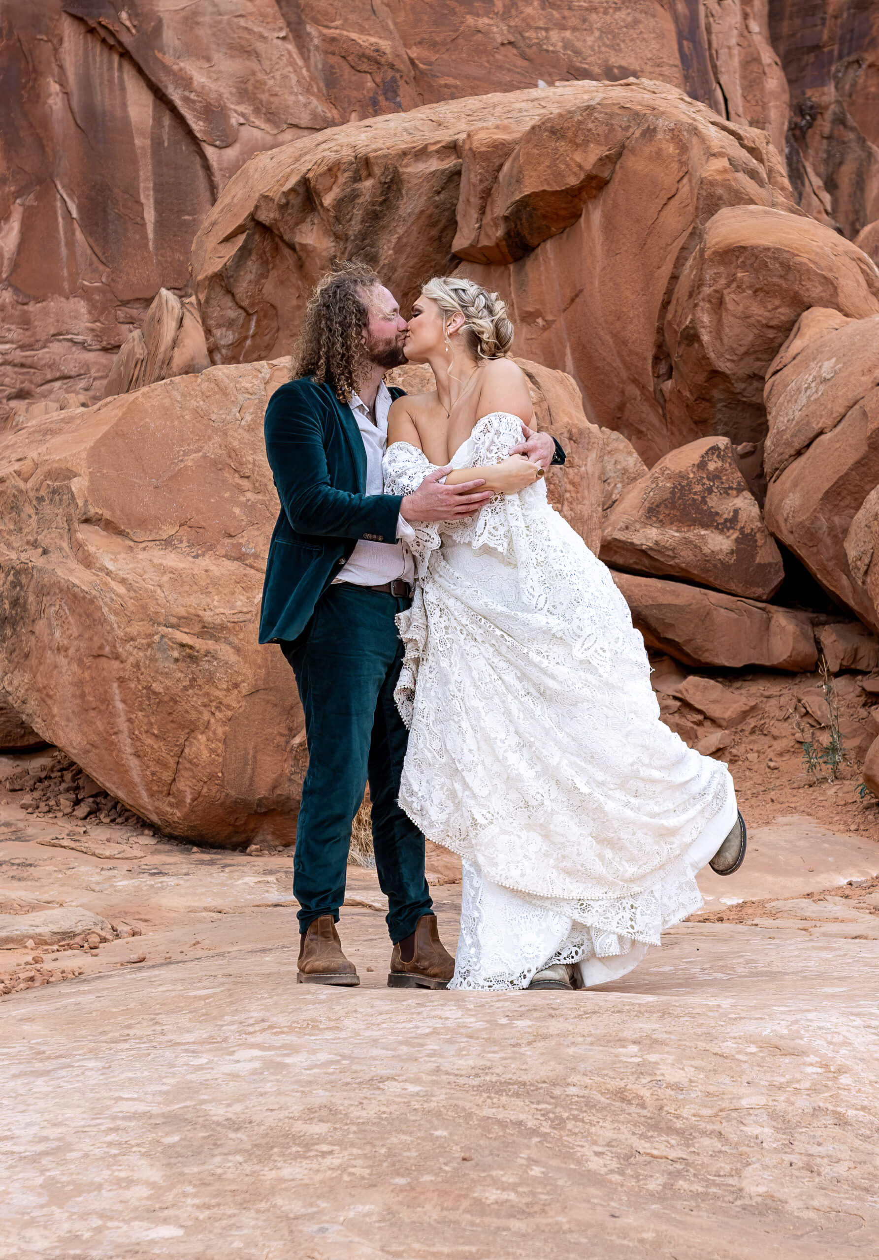 This is exactly why footwear matters on an elopement day, hiking in a wedding dress already adds complexity, and the right shoes make all the difference.
