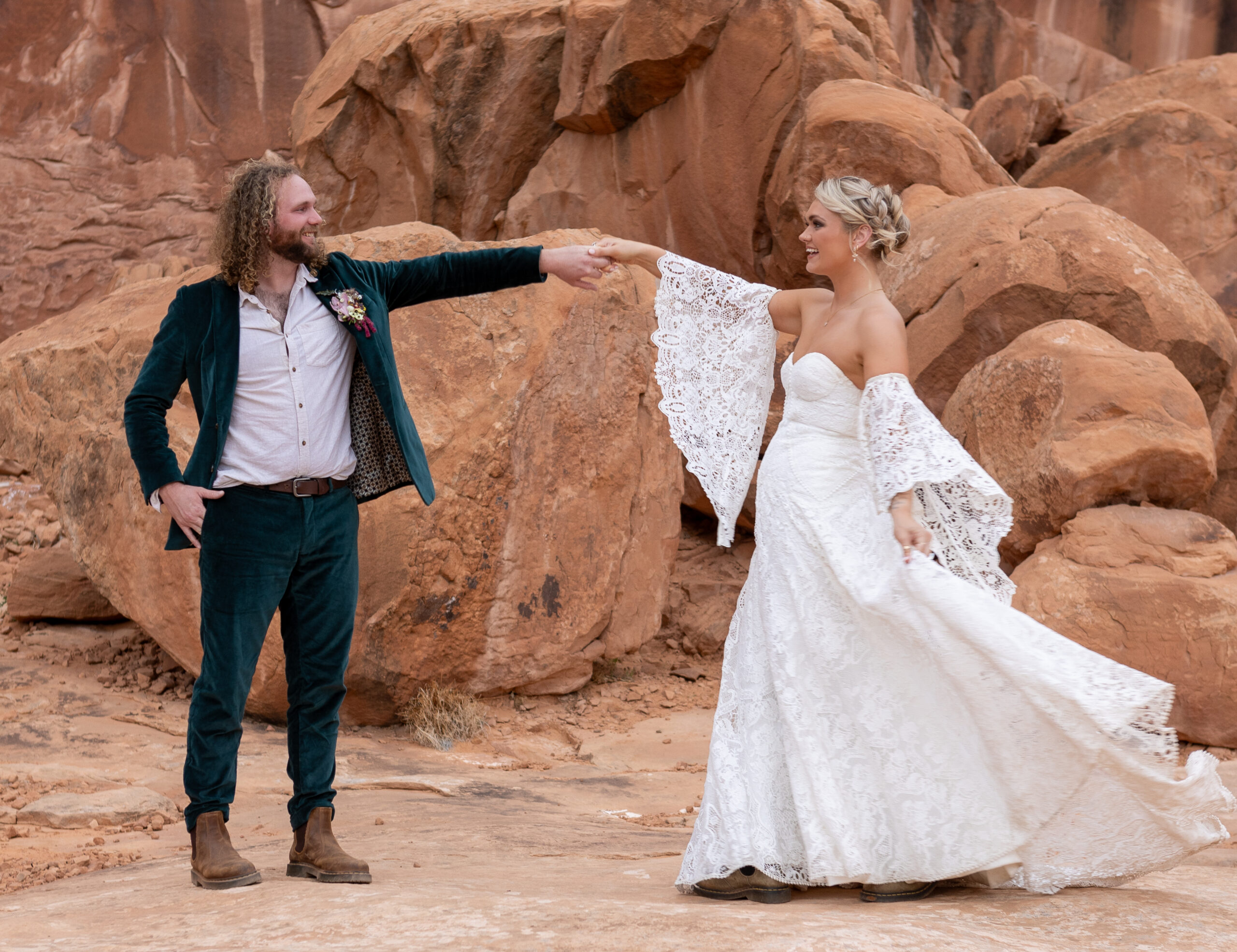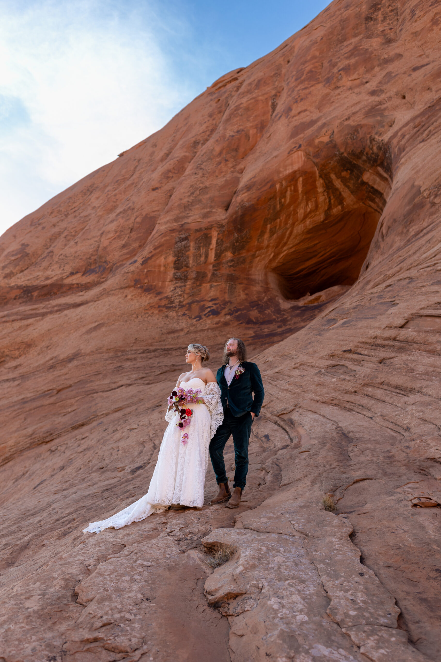 An elopement day isn’t about following a script or bowing to tradition. It’s about choosing experiences that feel true to who you are. The things you’ve always dreamed of doing, the activities you love doing together, or the adventures you’ve talked about for years but never quite made time for. Like the couple highlighted here that chose to spend their elopement day in Moab skydiving.
