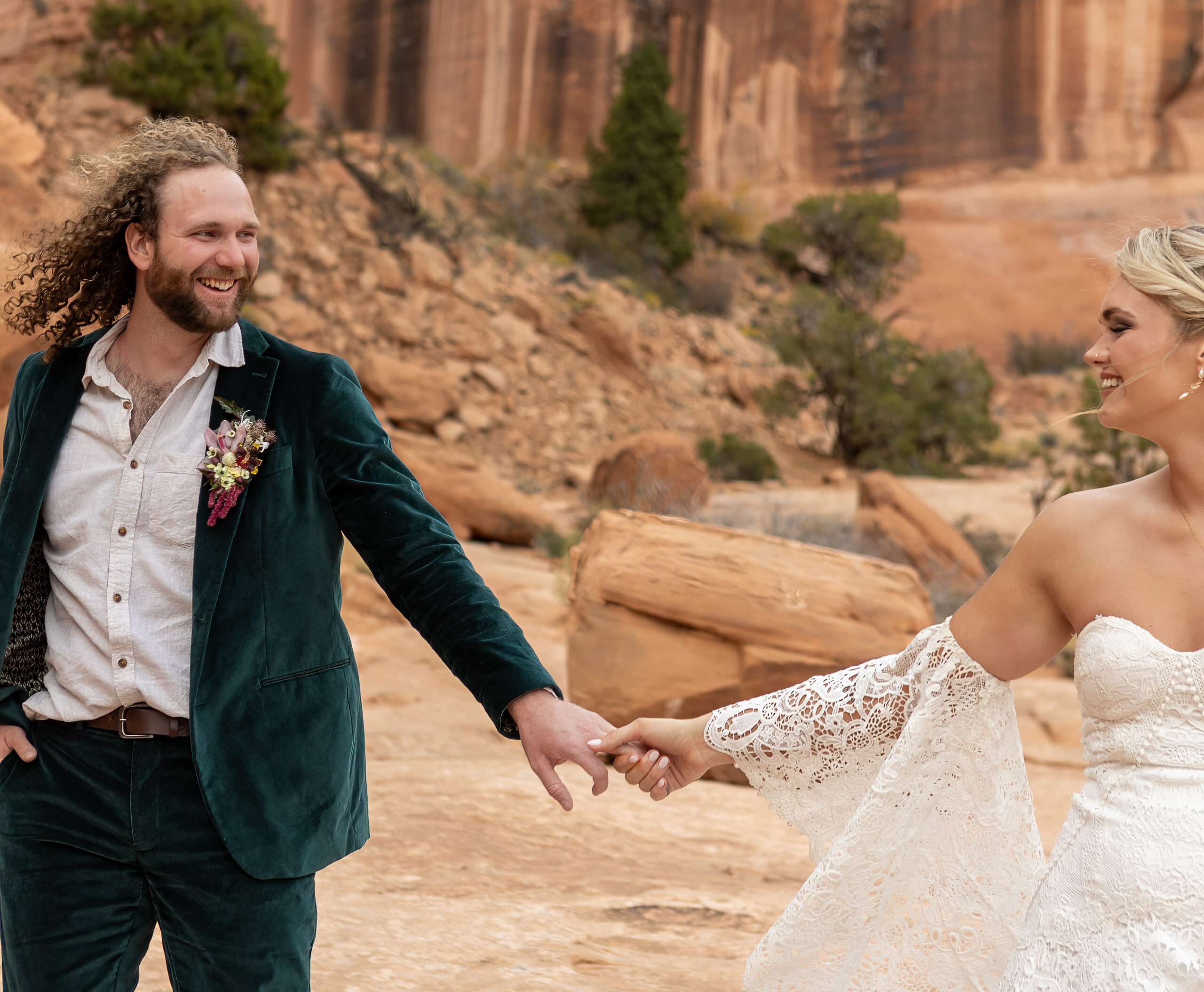 At Corona Arch, they shotgunned some beers, laughed, and celebrated their marriage as the sun dipped lower in the sky.