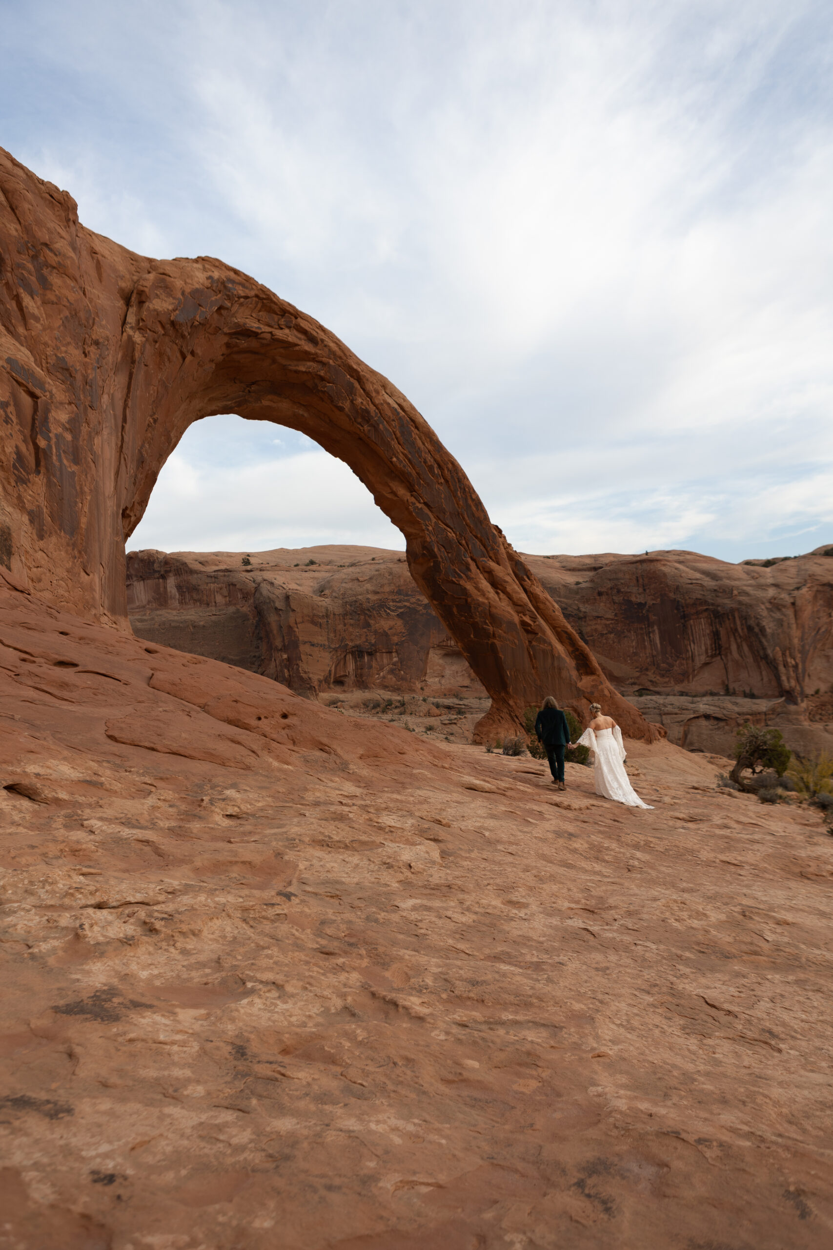 In the afternoon, we headed to Corona Arch. The hike is about 3 miles roundtrip and is considered to be moderate difficulty, and the day we were there it was hot despite being November. (This is something to consider when eloping in Moab.) We took our time, stayed hydrated, and took small breaks along the way.